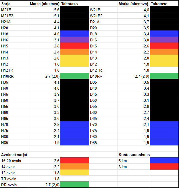 Lähtöluettelot - Start times